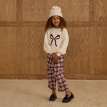 Your little one will be excited to put this sweater on! Featuring a centered large burgundy bow on a cream base, this super soft sweater will keep your little one warm all of Fall!