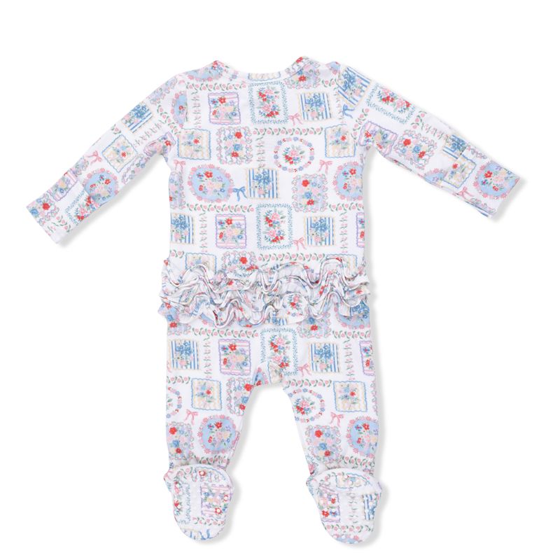 Angel Dear Julep's Floral Patchwork 2 Way Ruffle Back Zipper Footie