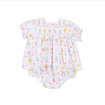 Angel Dear Spring Blooms Bow Trellis Smocked Ruffle Bubble with Skirt