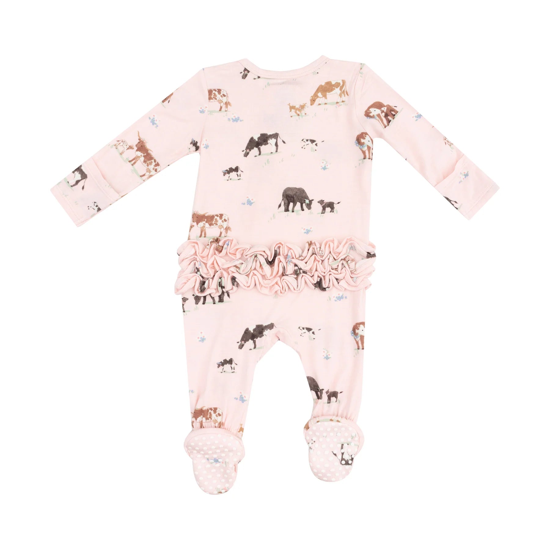 Angel Dear Cow Families 2 Way Zipper Ruffle Back Footie