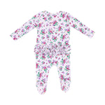 Angel Dear Preppy Roses Ruffle Front Zipper Footie