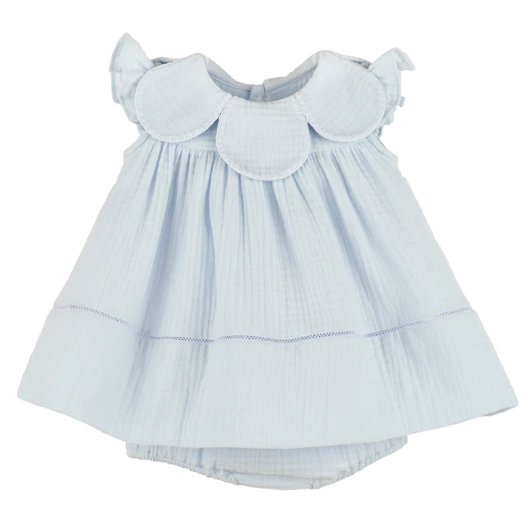 Indulge in the luxurious White Cuddle Cotton Petal Float Dress. This all-white dress features a delicate petal collar and elegant ruffle sleeves, exuding sophistication and exclusivity.