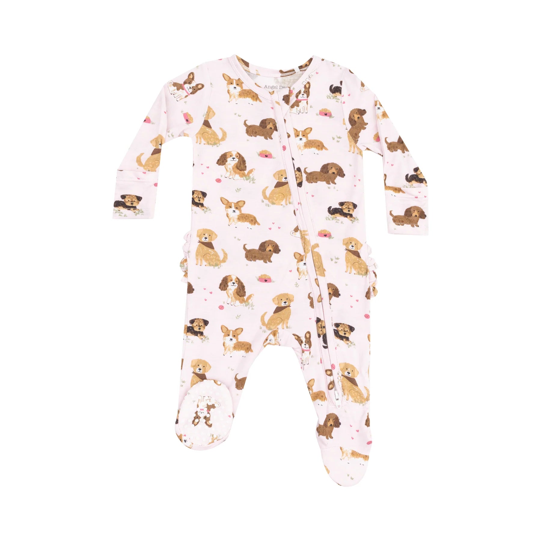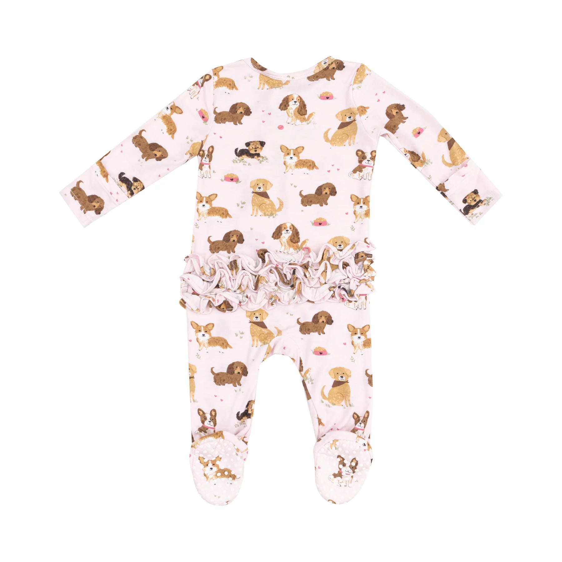 Angel Dear Best Friend Dogs Pink 2 Way Ruffle Back Zipper Footie