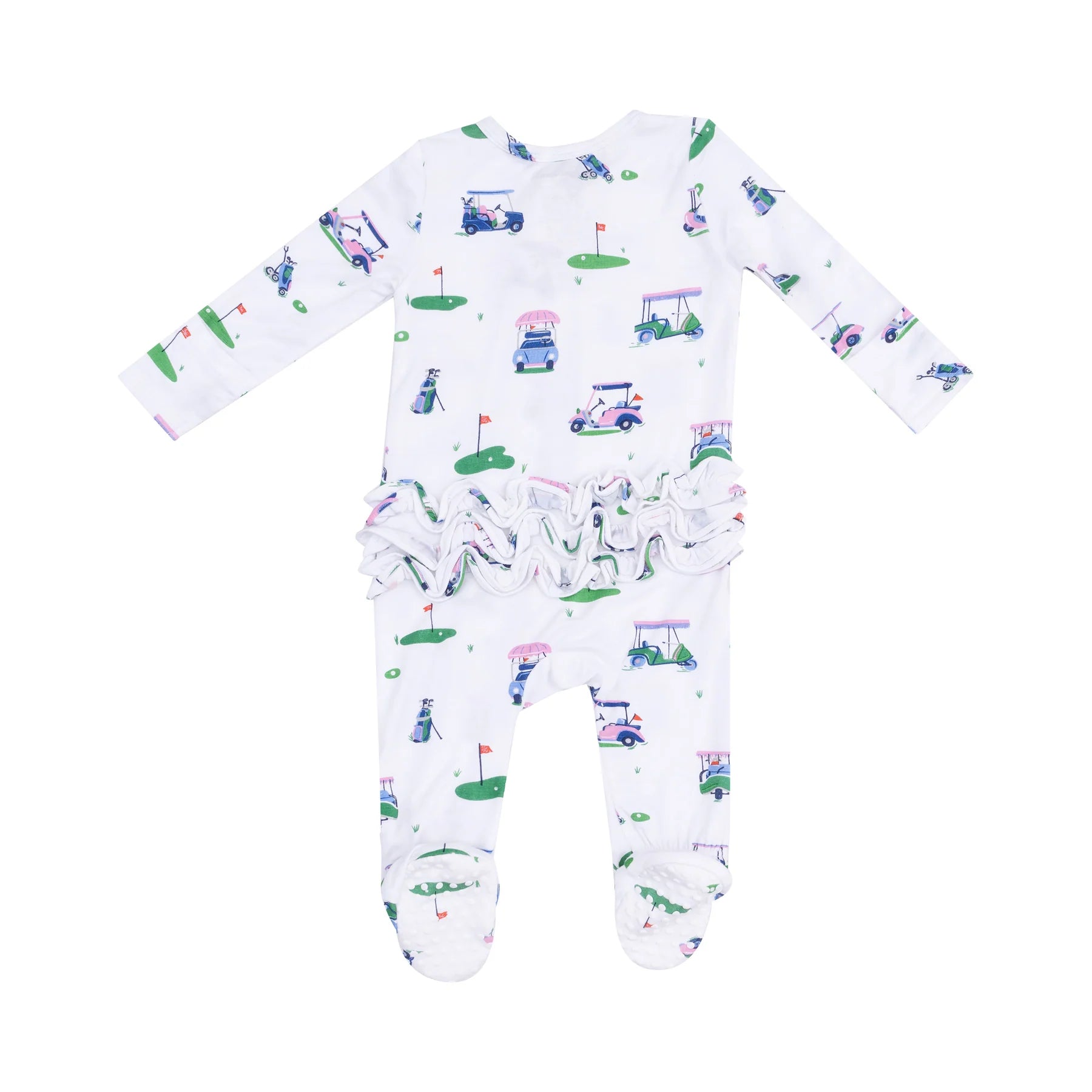 Angel Dear Vintage Golf Carts Pink 2 Way Ruffle Back Zipper Footie