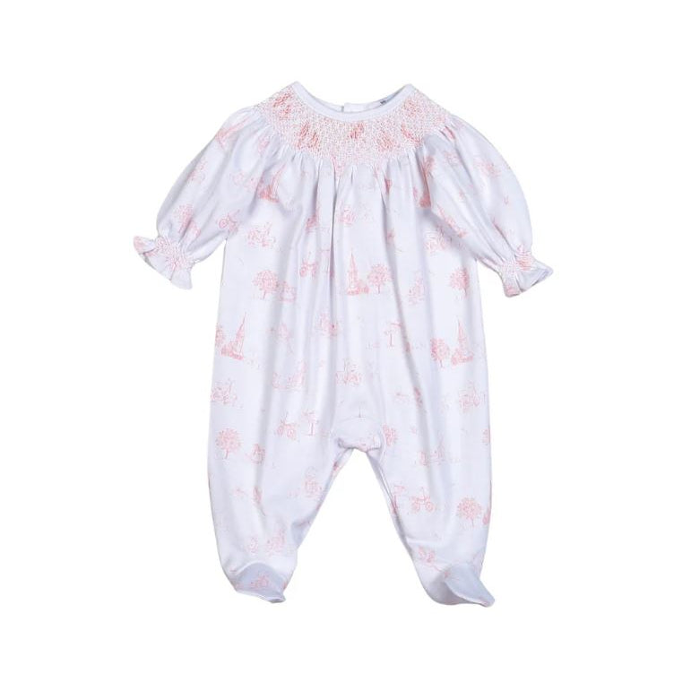 Baby Loren Pink Baby Toile Pima Hand Smocked Footie