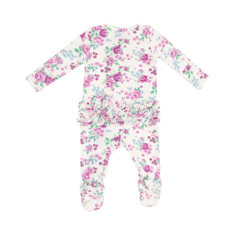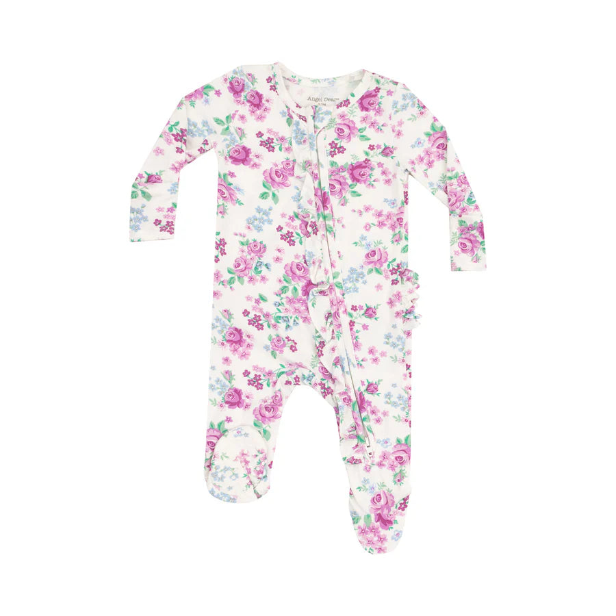Angel Dear Cute Little Roses Ruffle Front Zipper Footie