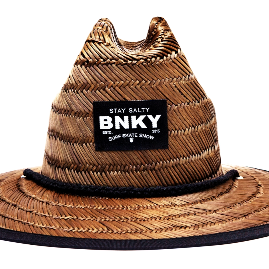The Barney Patrol Matted is our 100% woven natural straw sun hat. Dried straw is DELICATE and can be broken if bent or smashed. Straw hats are designed to protect you from the sun, but not from the water. Water on straw hats will cause the straw to bow, expand, and eventually break. Avoid putting it in the pool or ocean. The hat includes a chin strap tie that can be used to accommodate head size. The Barney Patrol comes in an infant/baby, toddler, or youth size.