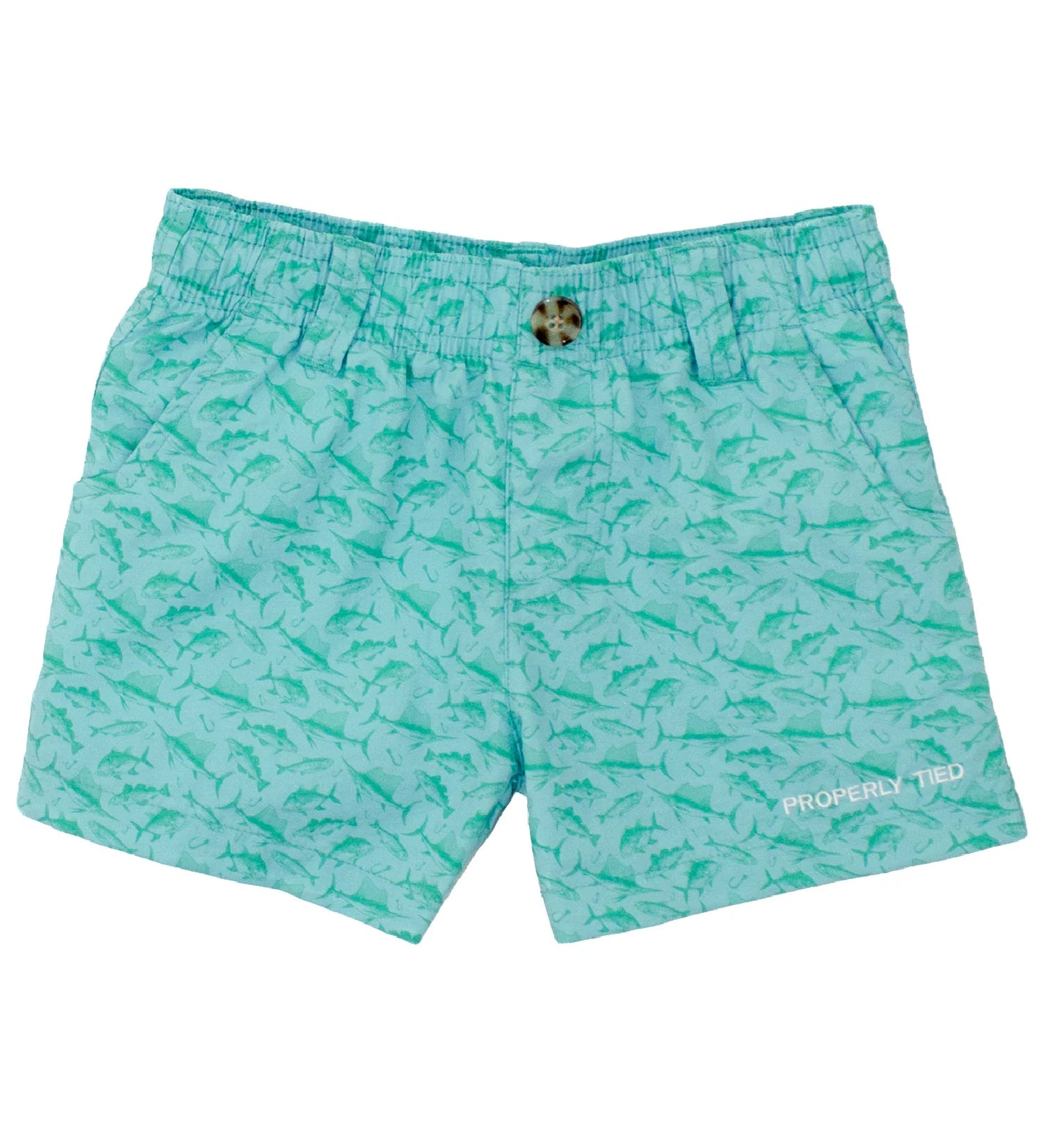 Quincy Mae Boys Swim Short Blue + Butterscotch Stripe