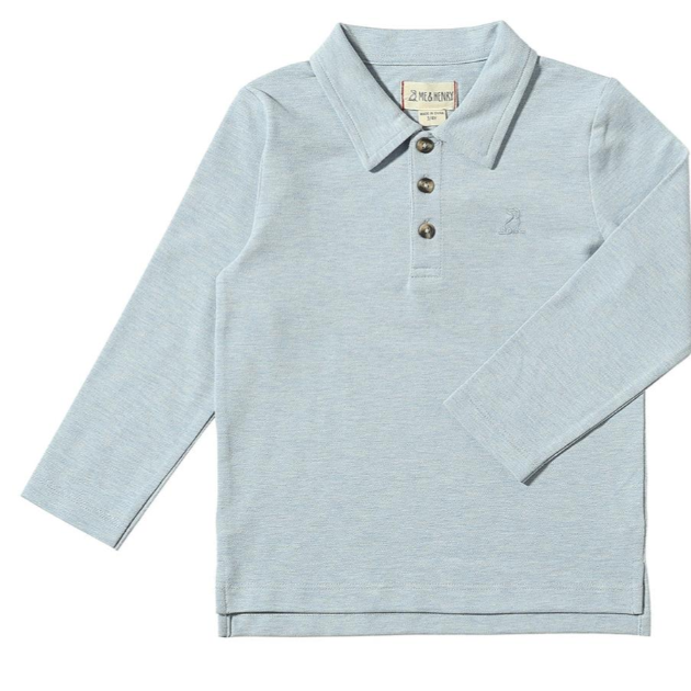 Me & Henry Spencer Long Sleeve Polo Blue Pique