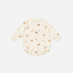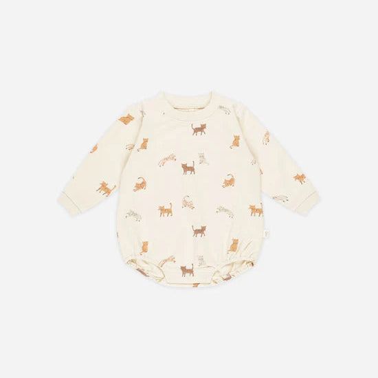 Our Crewneck Bubble Romper is the perfect piece for your transitional wardrobe.