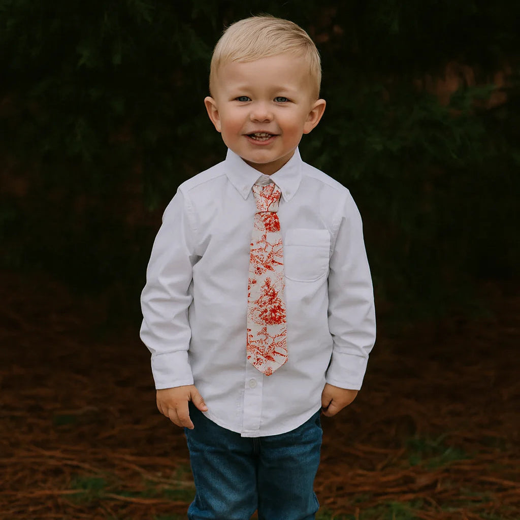 Add a splash of fun and style with these playful red printed woven ties for boys. Designed with a simple Velcro attachment, they're easy to wear and perfect for little hands to manage on their own. Ideal for dressy occasions or adding charm to everyday outfits, these ties combine convenience with a dash of spirited color.