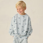 Rylee + Cru Sweatshirt in Sharks delivers kids coastal graphic style, soft comfort, and playful boutique layering for breezy summer days versatile stylish look.