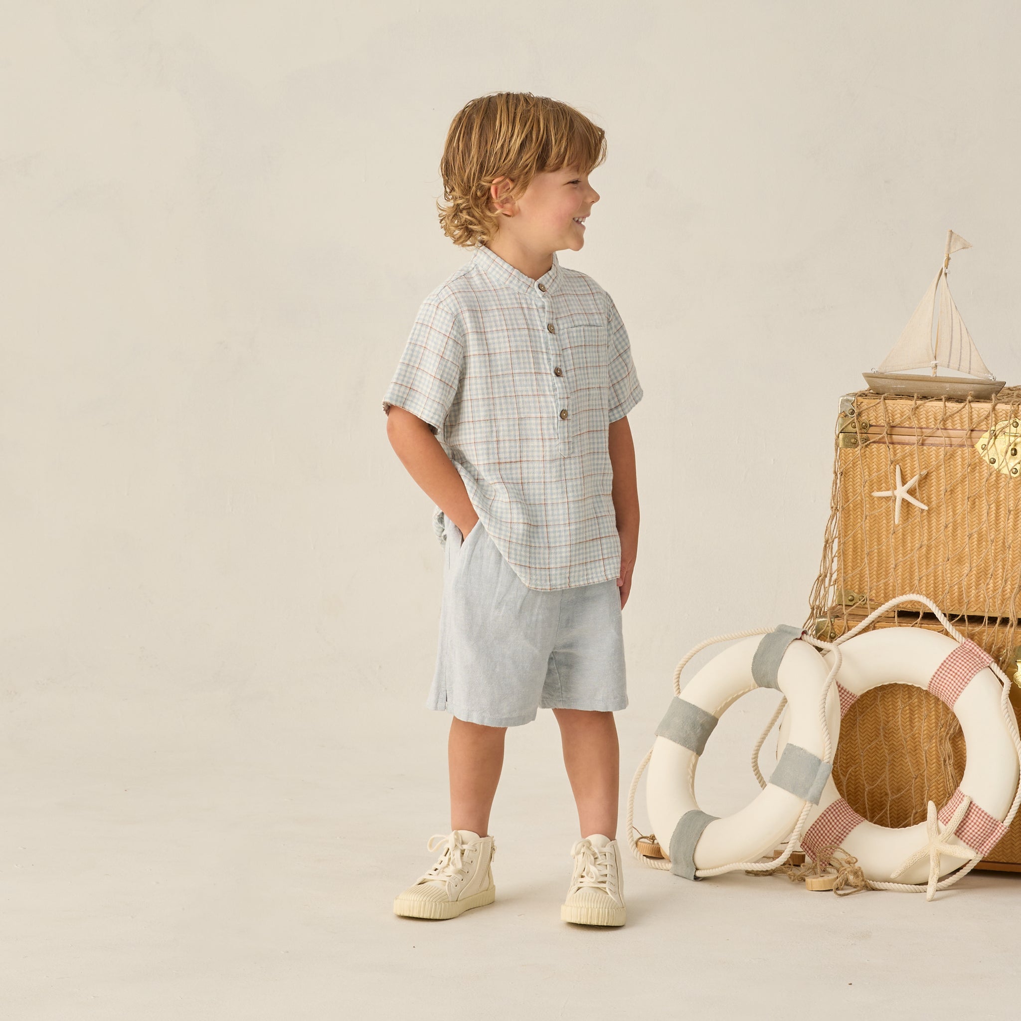 Me & Henry Newport Woven Shirt Chambray/Cream Plaid