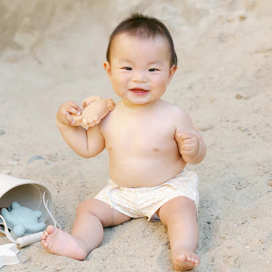 These soft boardshorts feature an elastic waistband and drawstring. Perfect for pool and beach days.