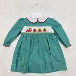 Petit Ami Green Gingham Smocked Christmas Train Dress