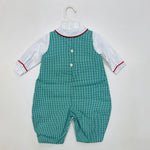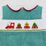 Petit Ami Green Gingham Smocked Christmas Train Jon Jon