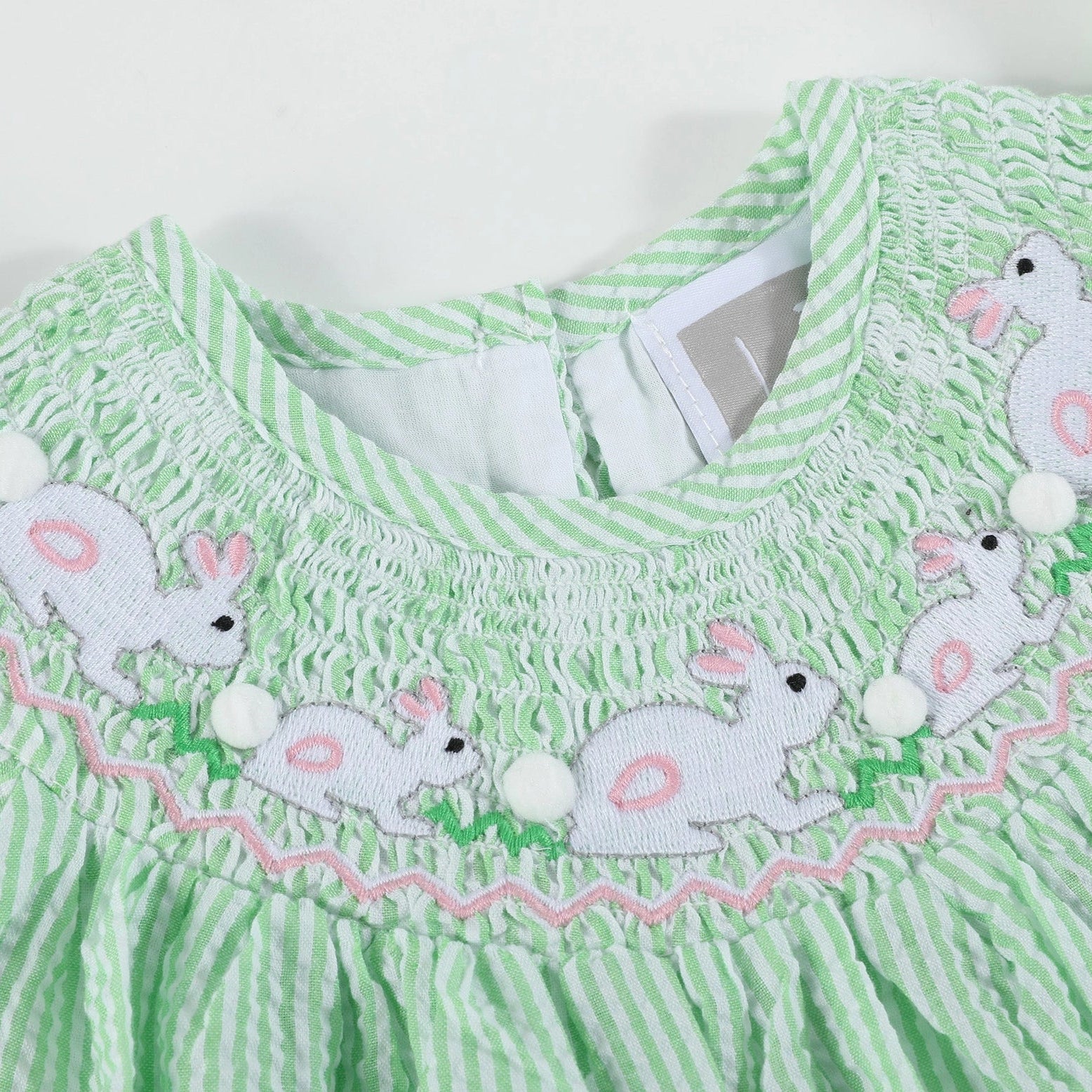 Lil Cactus Green Seersucker Easter Bunny Smocked Bishop Dress