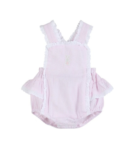 Lil Cactus Pink Seersucker Easter Bunny Ruffle Romper