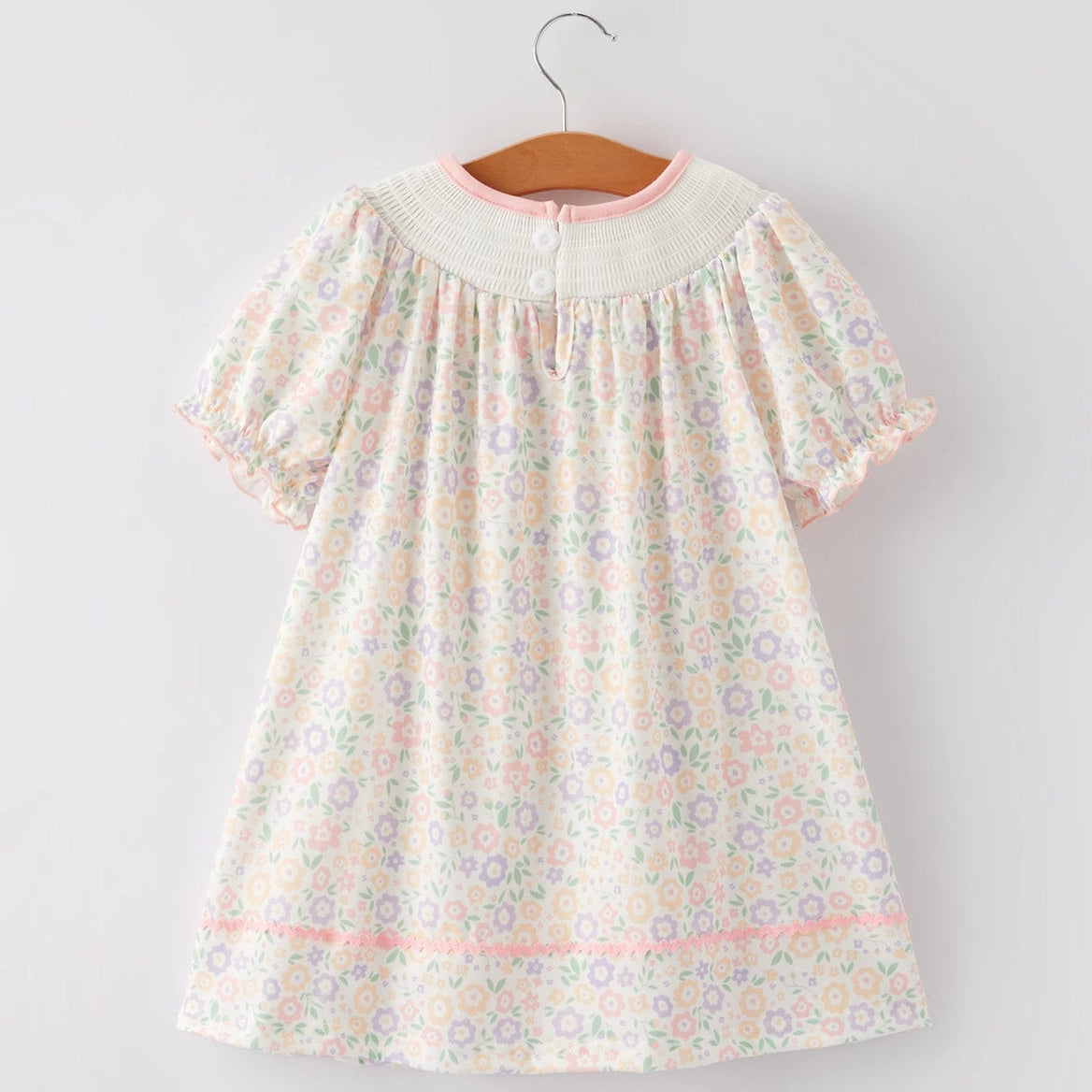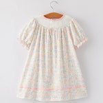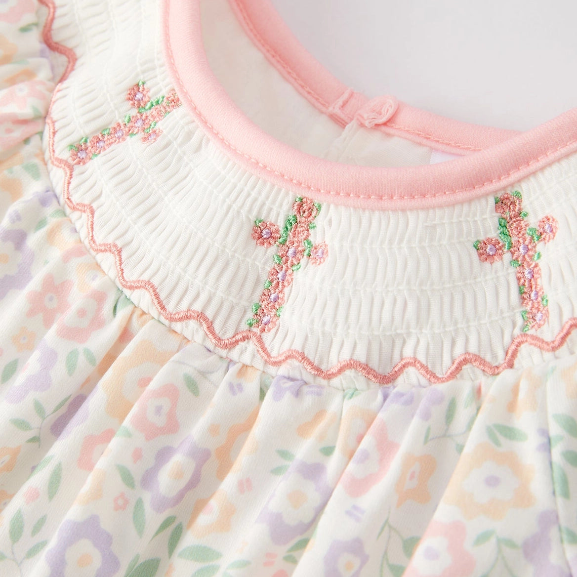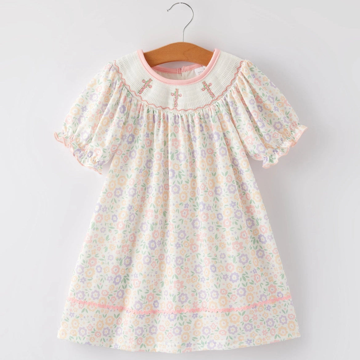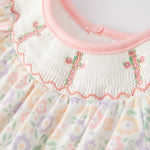 A sweet swing dress with floral detail and an embroidered cross for an extra-special touch. The easy silhouette gives plenty of movement for play, pictures, and everything in between. Finished with a soft, classic look that works for everyday or Sunday.