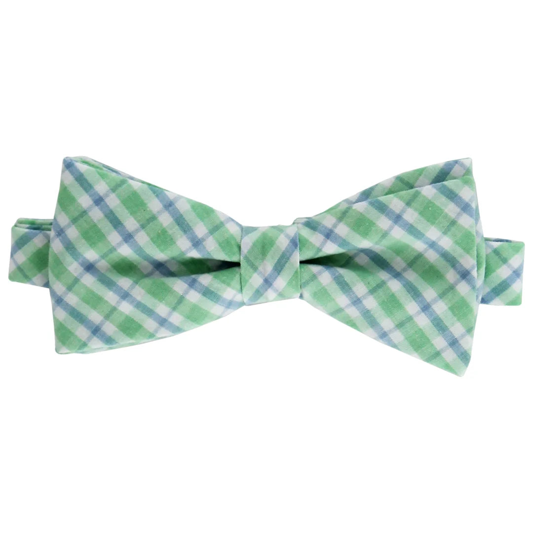 The Bridgewater bow tie brings cool coastal colors to formal looks. Its plaid pattern pairs beautifully with crisp button-downs and light linen suits. Perfect for Easter, weddings, and portraits. A polished accent that completes his classic Southern charm.