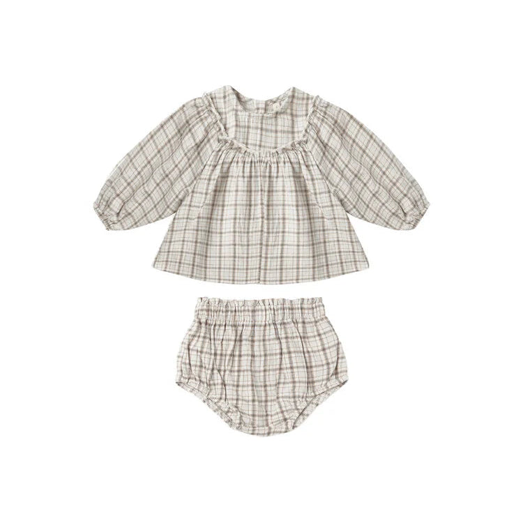 Quincy Mae Mia Top and Bloomer Set Blue Plaid