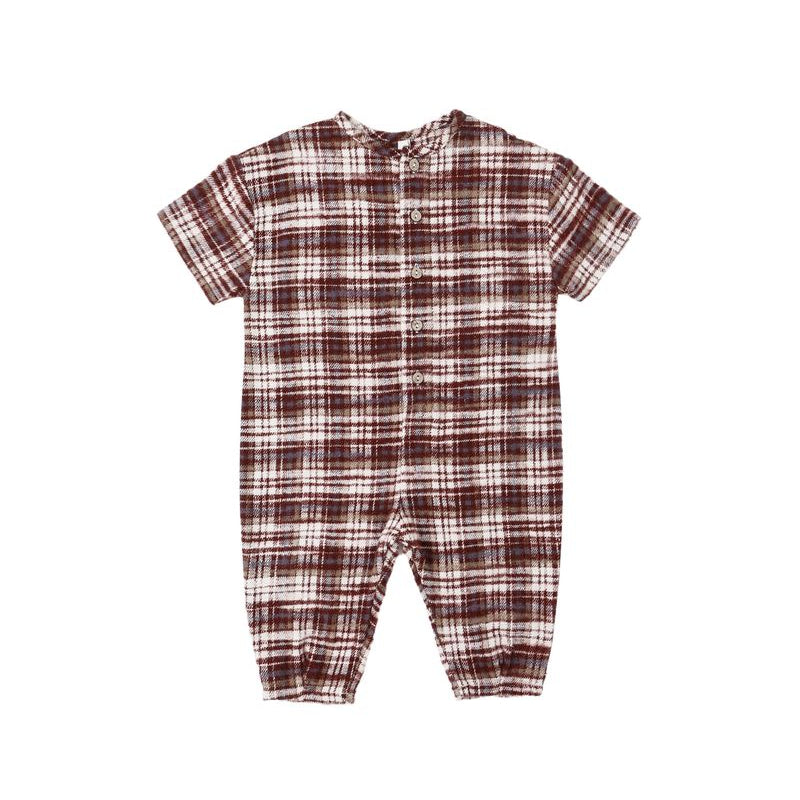 Bundle up your little boy in this adorably warm and cozy romper! This burgundy plaid will be absolutely perfect for your Fall pictures!