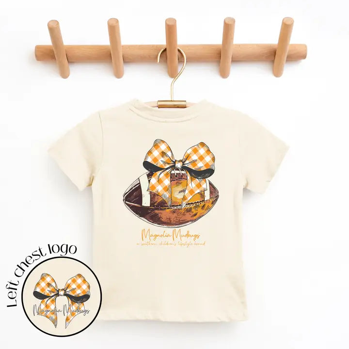 Magnolia Mudbugs Orange Gingham Bow Football Tee