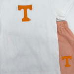 GO VOLS!! Show up to the game comfy and in style wearing this Vive la Fete white top and orange gingham shorts set. Both pieces have an embroidered "t" for a little extra something!
