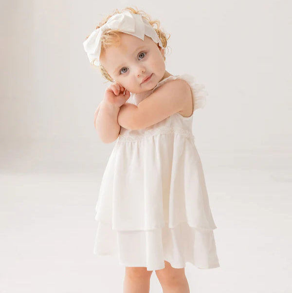 Isobella and Chloe Crystal Flutter Sleeve Dress White