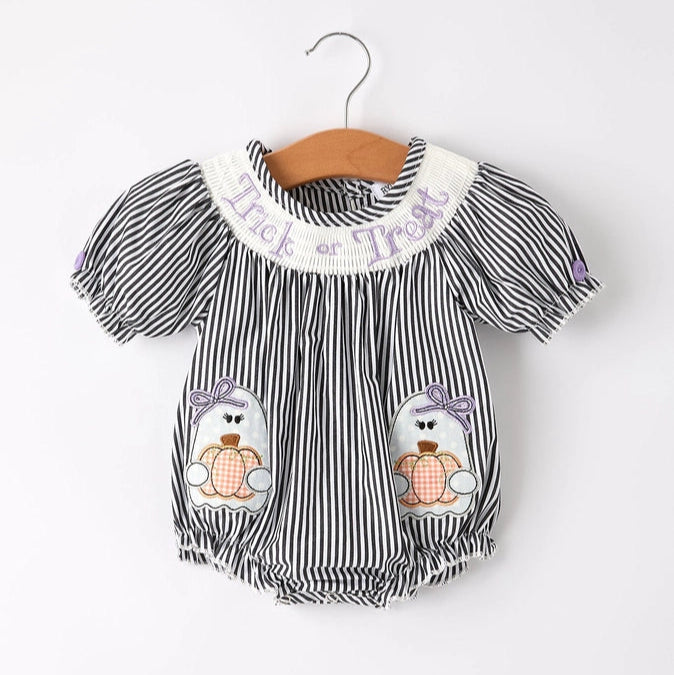 Rylee Faith Halloween Trick Or Treat Smocked Girls Romper