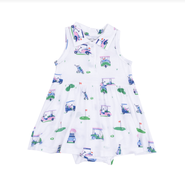Angel Dear Vintage Golf Carts Pink Polo Bodysuit Dress