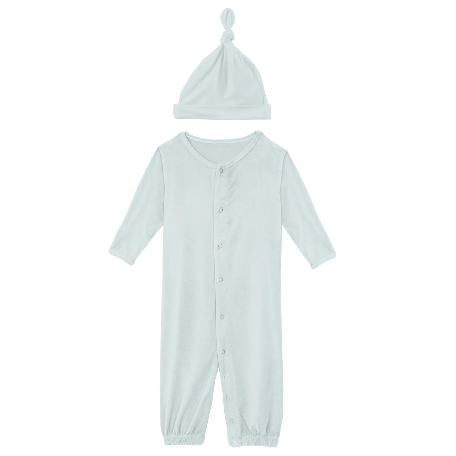 Kickee Pants Solid Layette Gown Converter & Single Knot Hat Set Fresh Air