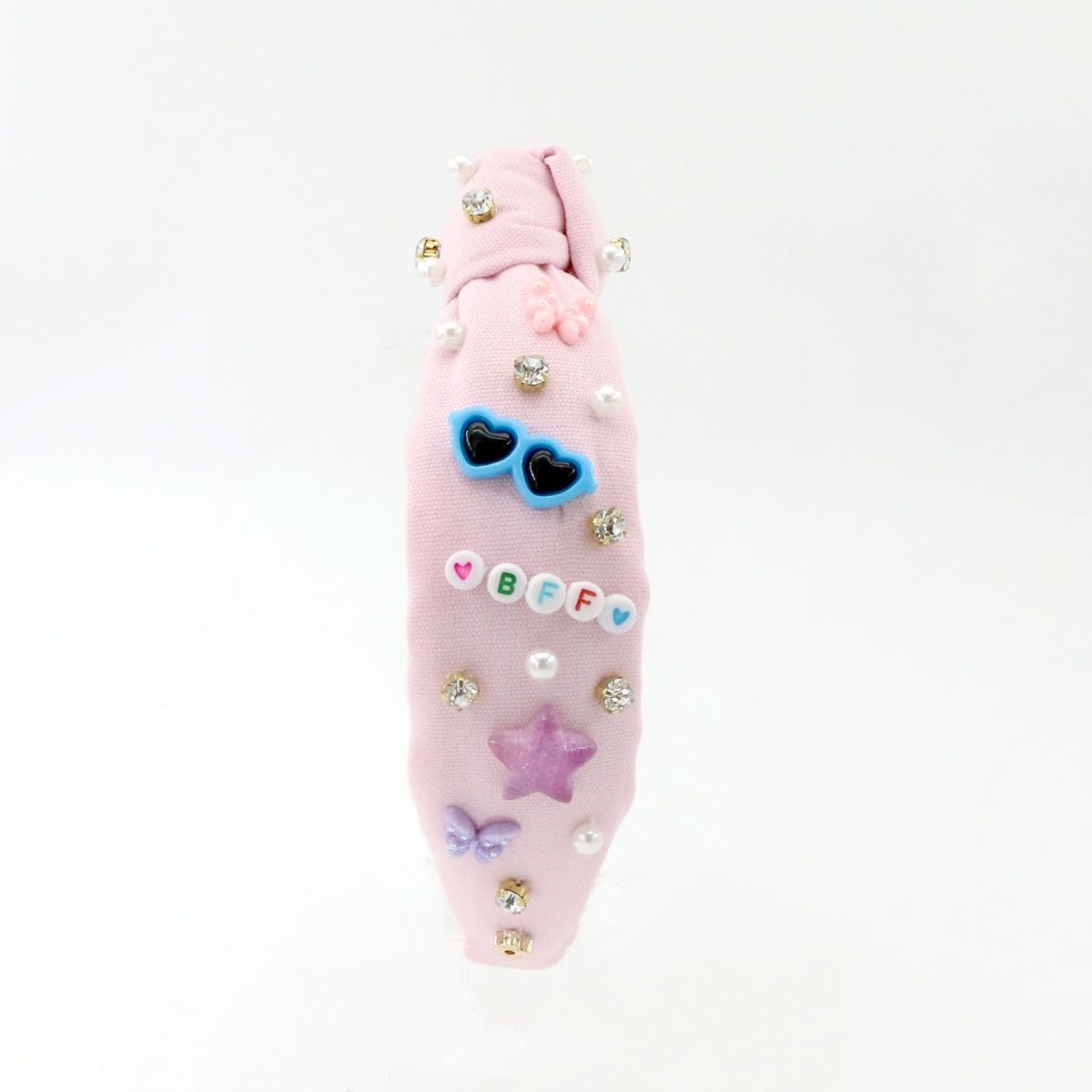 This festive headband features a pink canvas base, adorable BFF charms, sparkling stones and shiny pearls throughout! A great special treat for your little and her best friend! At Poppyland, we create accessories that make every moment special! Allow your little to express her individuality in this gorgeous statement accessory.