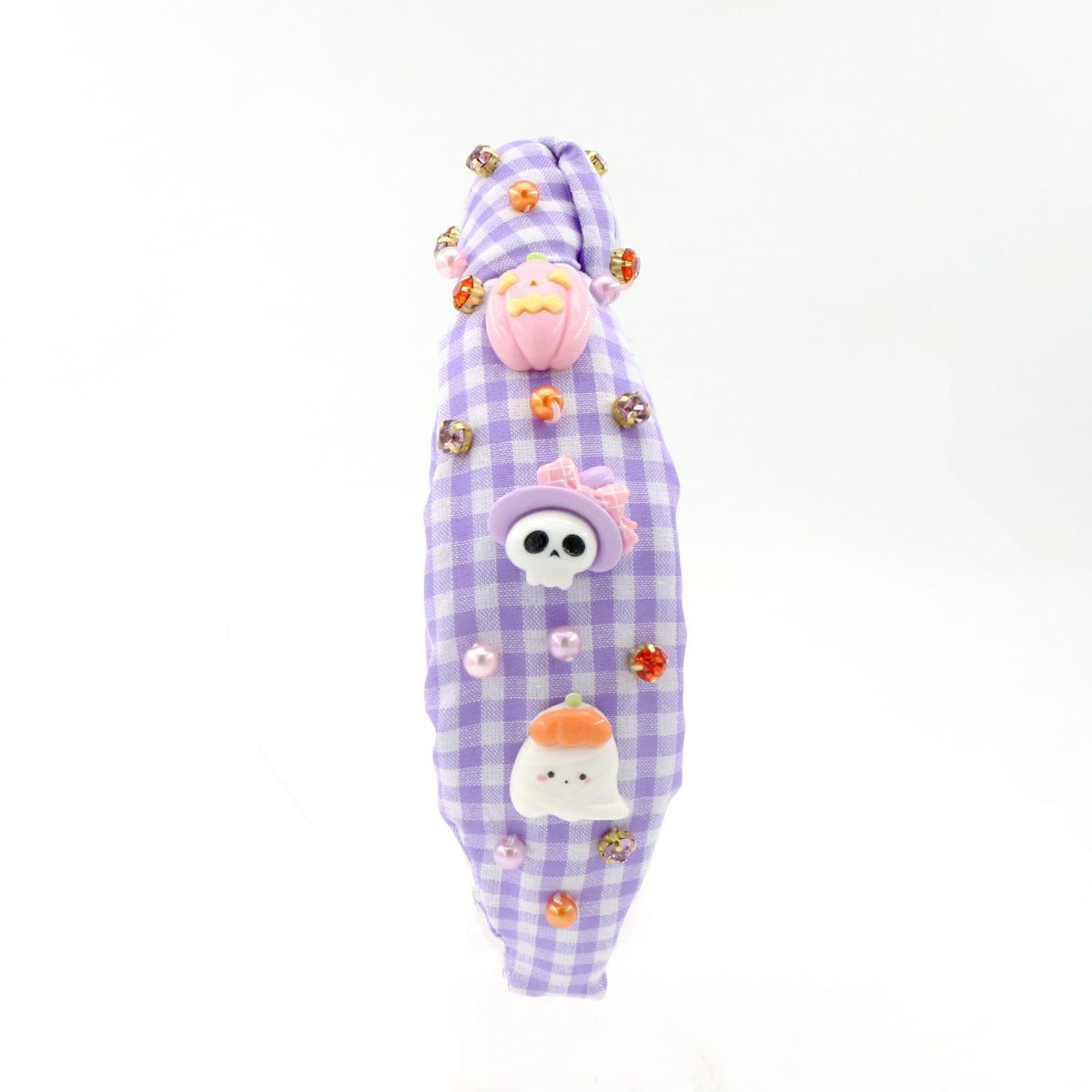 This festive Halloween inspired headband features a purple plaid base, quirky character charms, shiny beads, and sparkling stones throughout! At Poppyland, we create accessories that make every moment special! Allow your little to express her individuality in this gorgeous statement accessory.