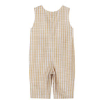 These Light Brown Gingham Pumpkin Vine Overalls are a charming choice for your little boy this Fall season. Detailed with smocking at the chest with adorable pumpkin embroidery. Buttons at the shoulder ensure adjustable sizing, while snap enclosures make diaper changes quick and easy. Perfect for Thanksgiving gatherings, family photos, and visits to the pumpkin patch. These overalls will keep your little turkey cozy and stylish all season long.