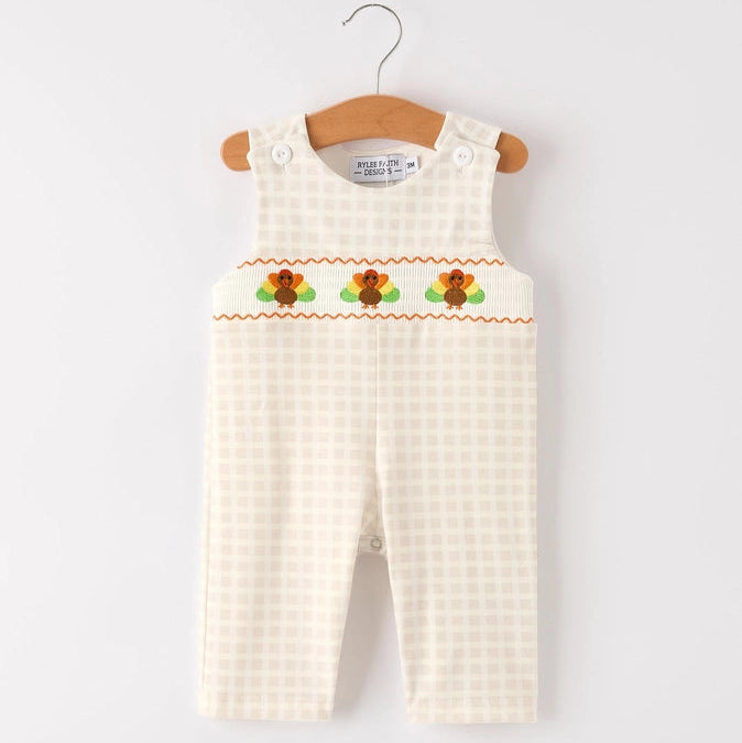 Rylee Faith Fall Thanksgiving Plaid Turkey Smocked Jon Jon