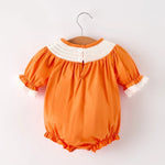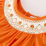 Rylee Faith Orange Pumpkin Smocked Bubble