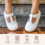 Introducing a Sweetheart Style: Our adorable t-strap boasts a charming cut-out heart detail, capturing the magic of childhood. Plus, it's a breeze to care for with our EZCare™ vegan material that's washable, ensuring both style and convenience for your little one. Experience the joy!