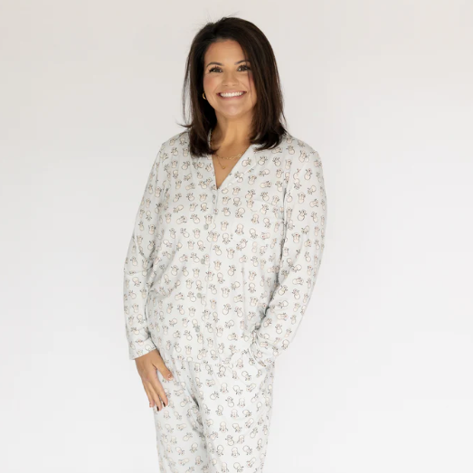 Slip into pure comfort with our Women's Tiny Snowmen Set—a two-piece pajama dream that feels as good as it looks. Crafted from a luxurious blend of 95% viscose from bamboo and 5% spandex, this set delivers buttery-soft fabric that your skin will absolutely love. The classic pattern pairs perfectly with practical details: a chest pocket for your essentials, front button closure, and a drawstring waist for the perfect fit. Whether you're lounging all day or catching some Z's, you'll feel wrapped in cozy bliss. Our model wears a Medium for reference.