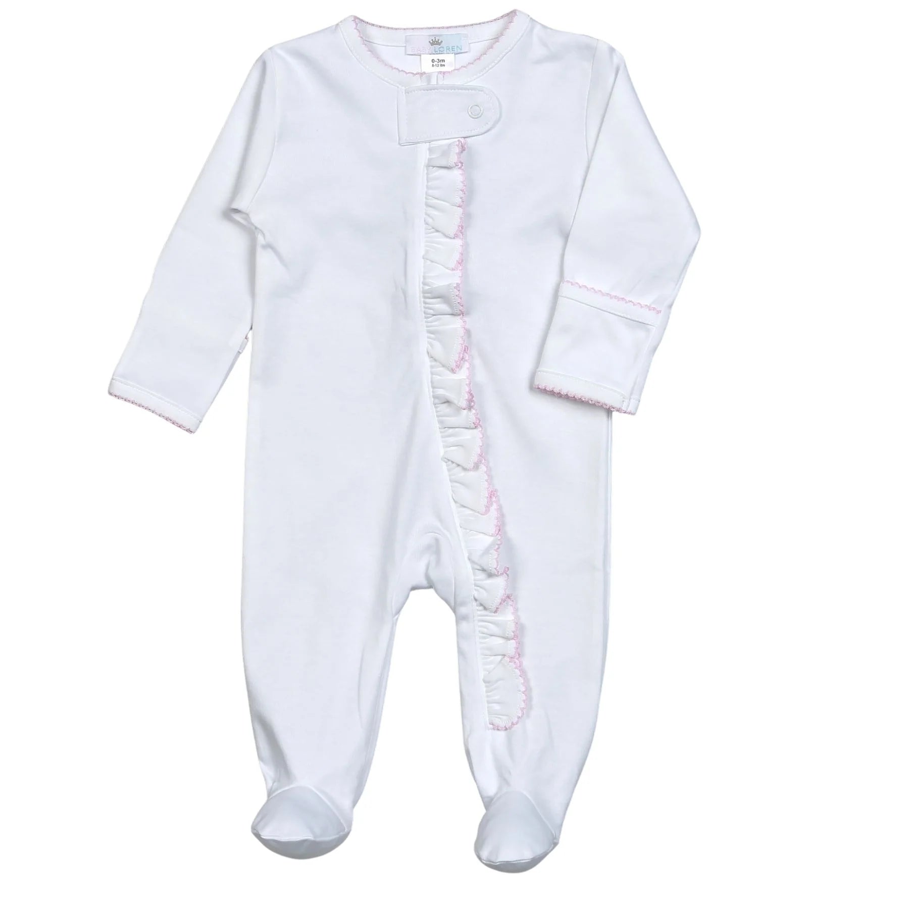 Baby Loren White Pima Cotton Footie With Pink Picot Trim