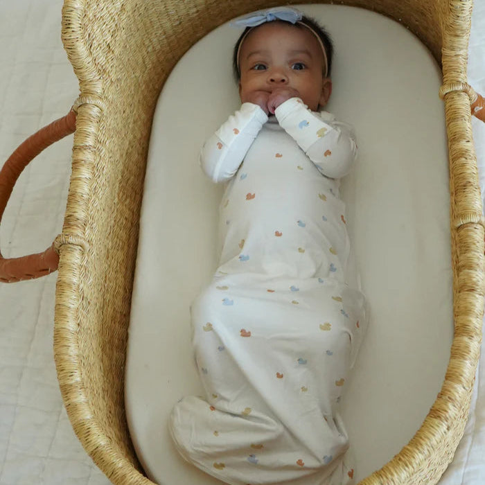 No knotting needed. – we're all about easy. Keep your tiniest tucked in with our extra-long take on the traditional baby gown with easy-access DIAPER-ZiP. The easiest changes and silky soft bamboo fabric means more coziness for them. One size fits NB to 3M.