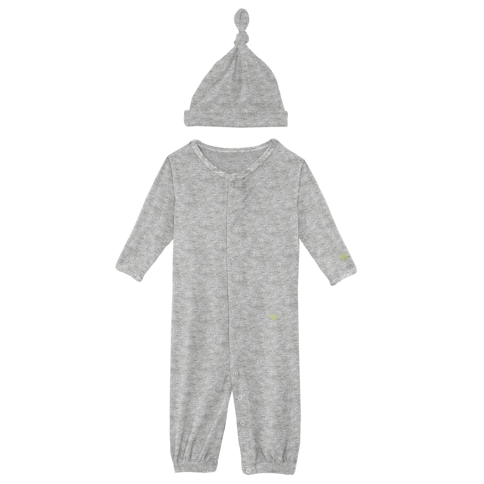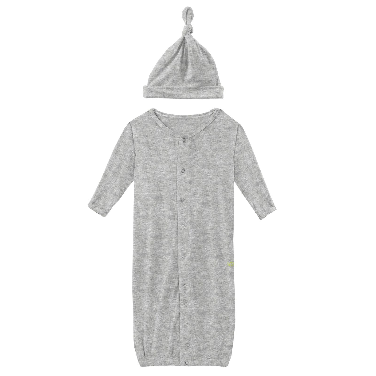 Kickee Pants Solid Layette Gown Converter & Single Knot Hat Set Heathered Mist