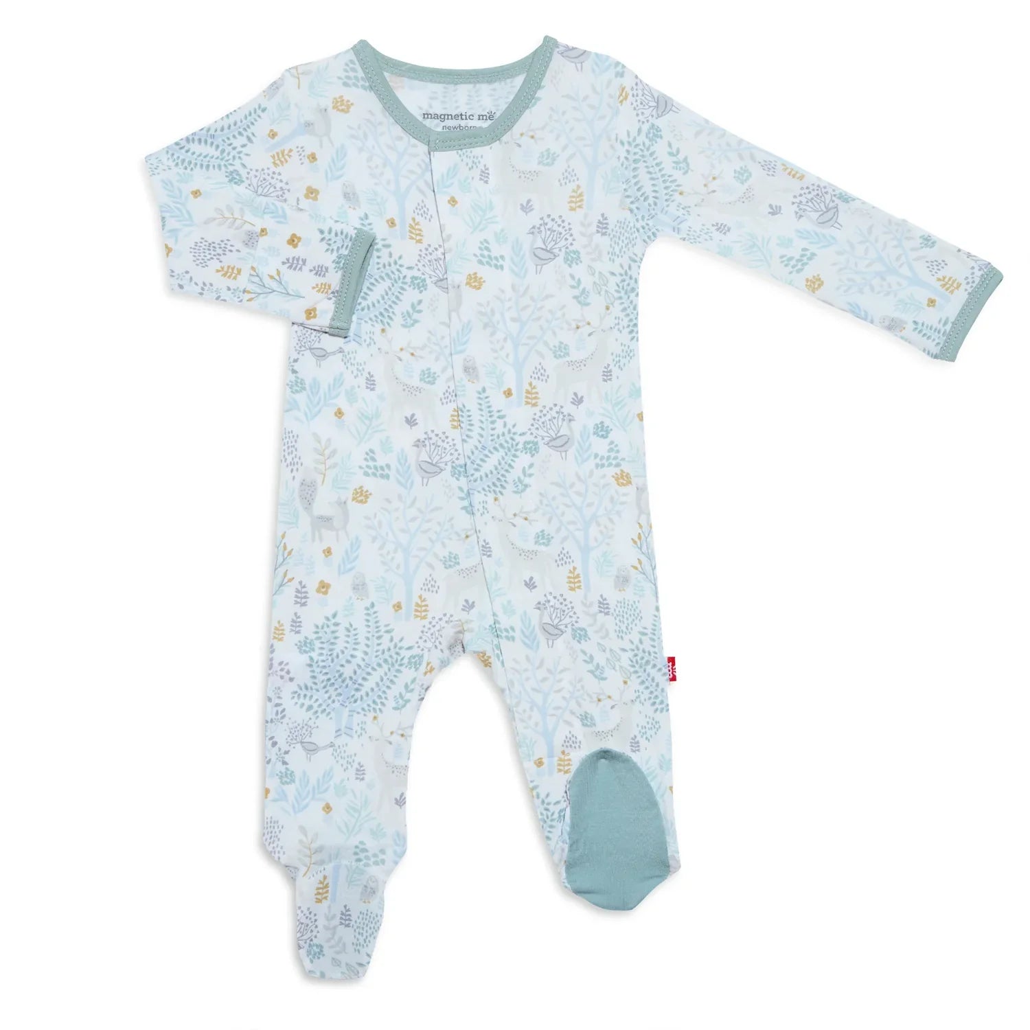 our parent favorite footie is an everyday (and night) essential with magnetic closures that make dressing easy. magnets are quick, quiet, and a lifesaver for middle-of-the-night changes. eco-friendly TENCEL™ modal is silky soft, breathable, and gentle on sensitive skin. temperature-regulating properties will keep warm in winter, you cool in summer, and oh-so comfortable year round.