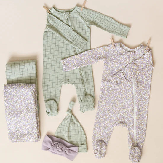 Quincy Mae Bamboo Zip Footie Purple Floral