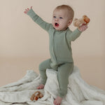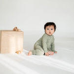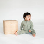The Mineral Green Zipper Sleeper is the perfect sleepwear for your little ones. Made with 95% viscose bamboo and 5% spandex, it provides maximum comfort and a soft touch. With fold-over hands, feet, and two-way zipper, your child can sleep peacefully without any irritation from tags. Trust in our product for a better night's sleep. A must-have for your little ones.