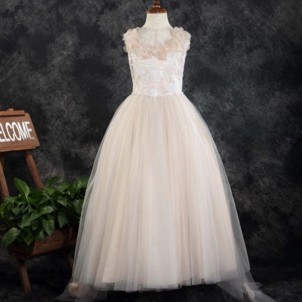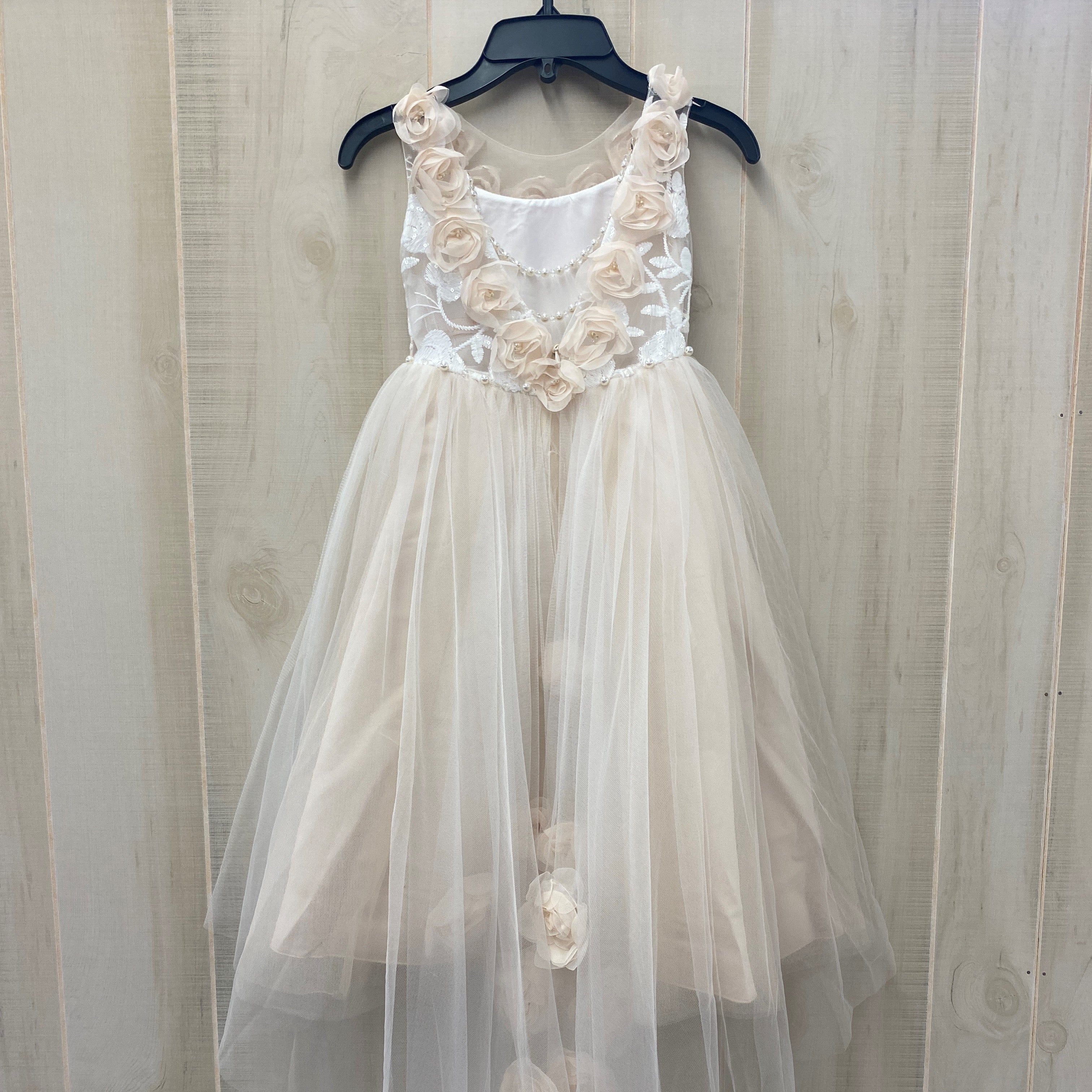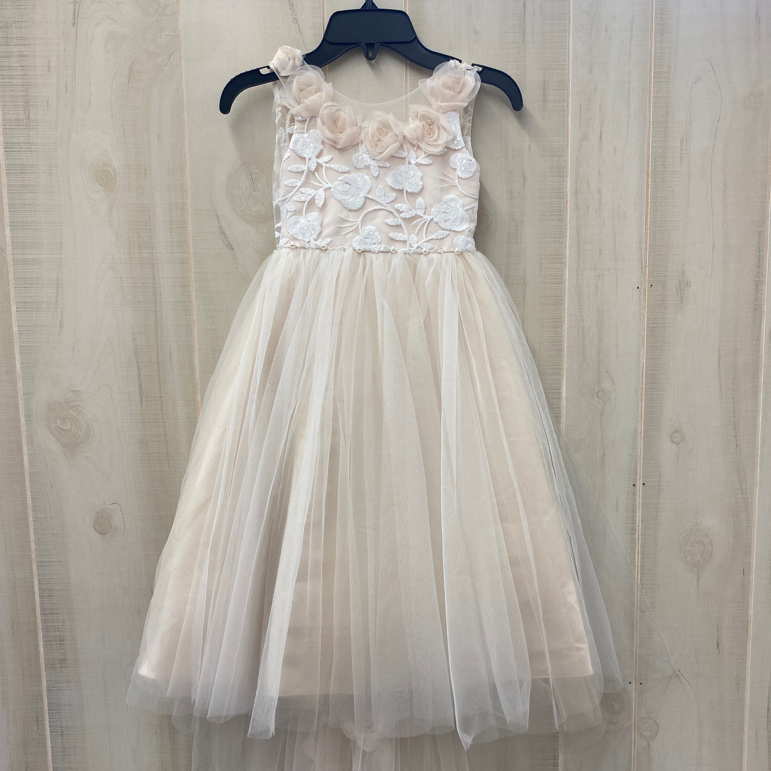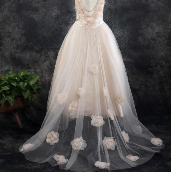 Princess Daliana Pearl Back Flower Girl Dress Champagne