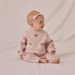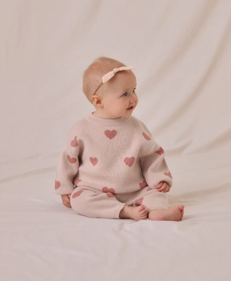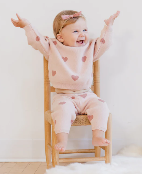 Quincy Mae Heart Knit Sweater and Pant Set Bubblegum