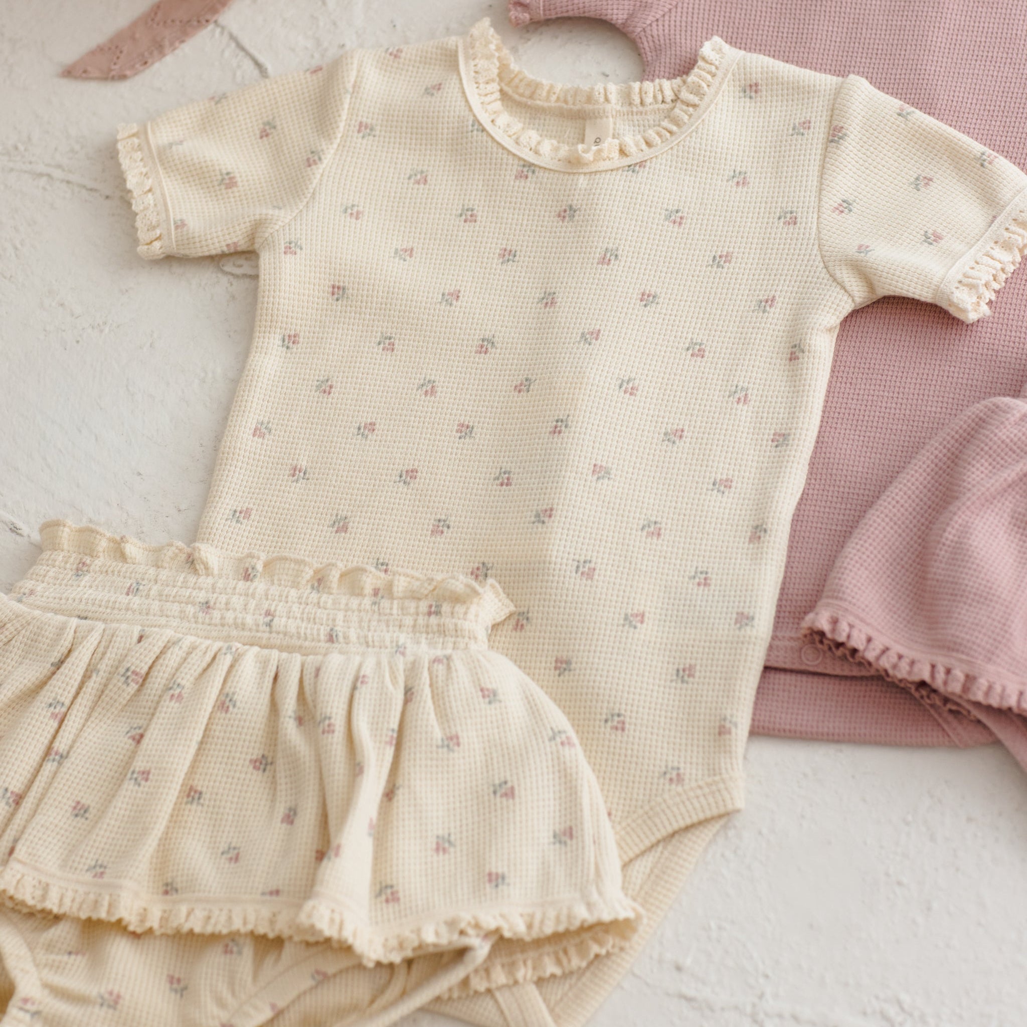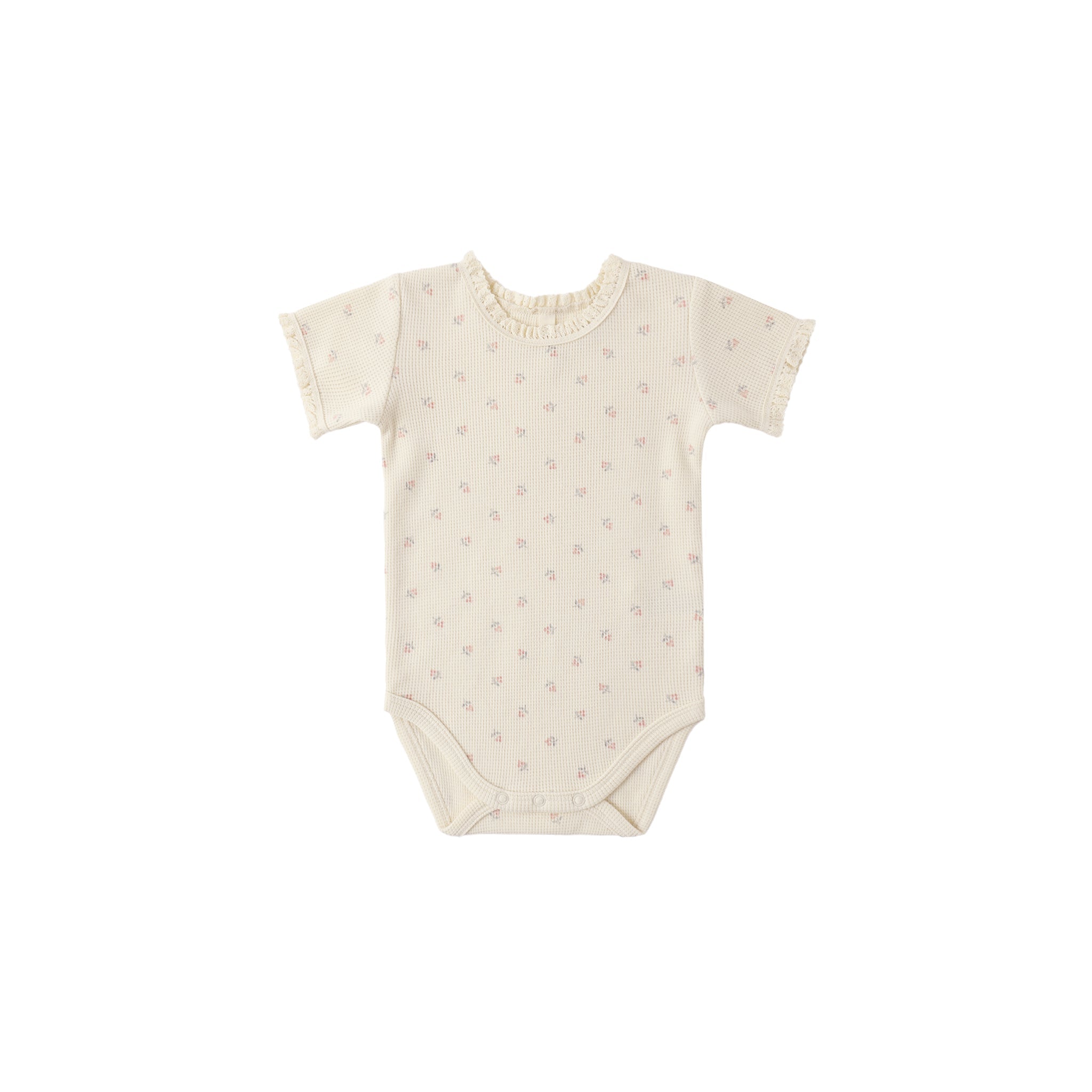 Quincy Mae Short Sleeve Waffle Bodysuit Mauve Ditsy