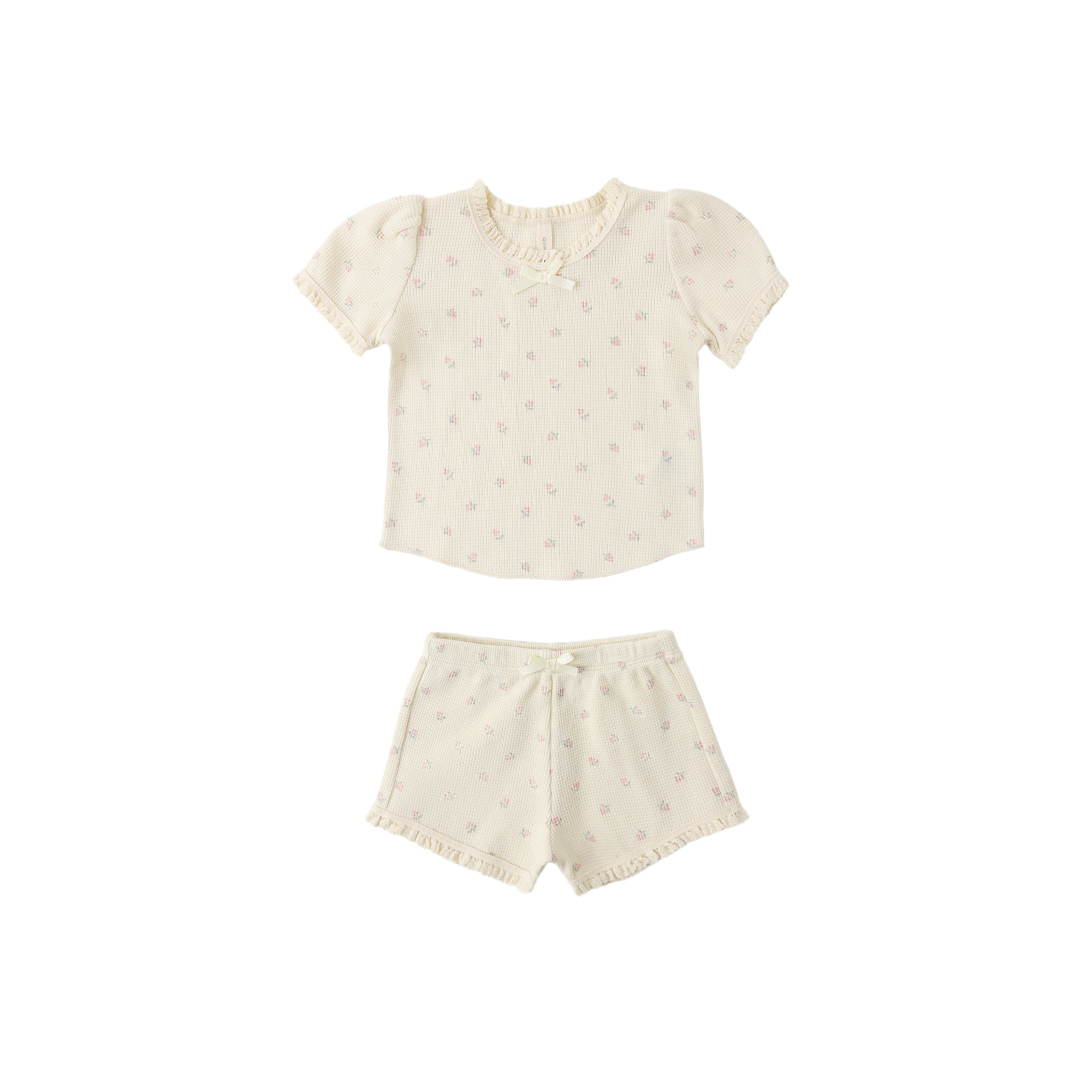 Quincy Mae Short Sleeve Waffle Bodysuit Mauve Ditsy