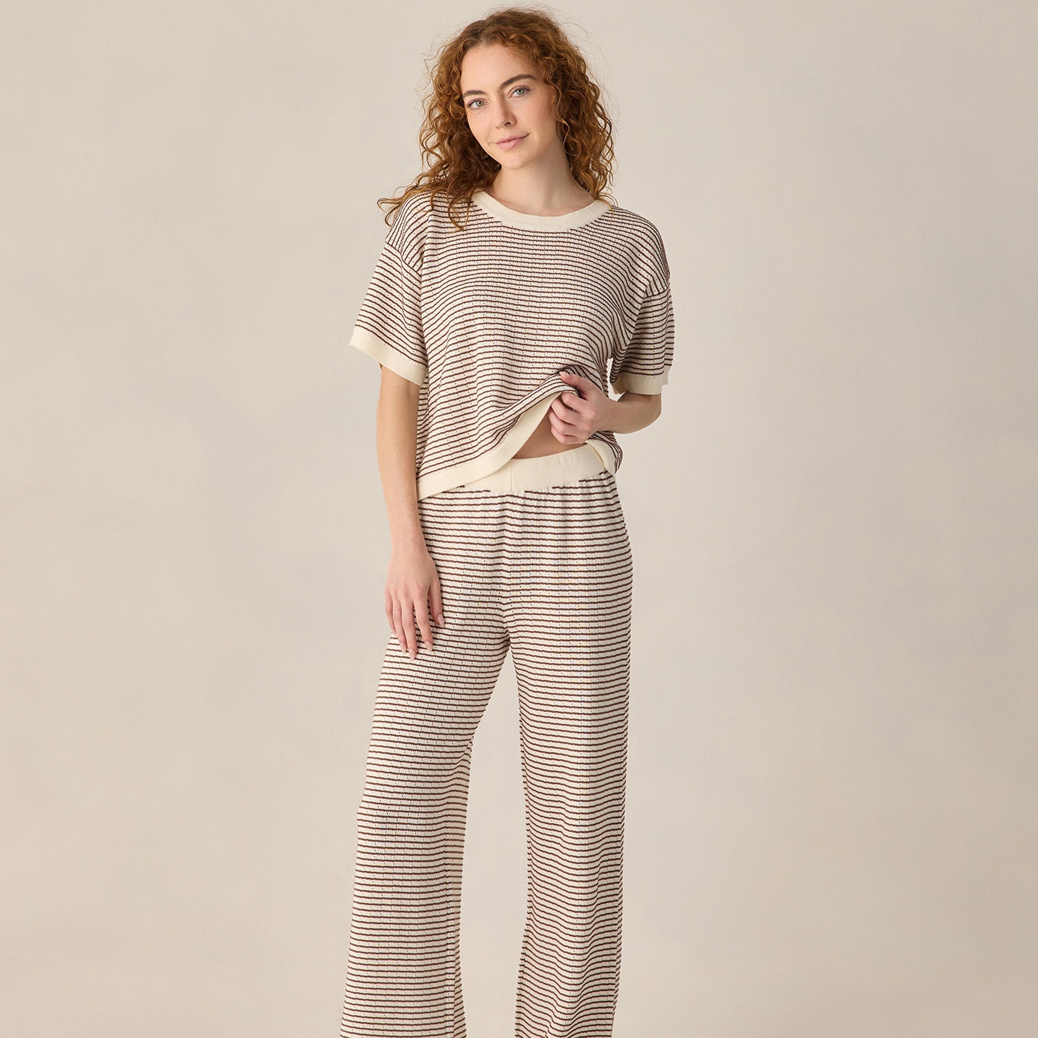 Rylee + Cru Women's Knit Wide Leg Pant Chocolate Stripe